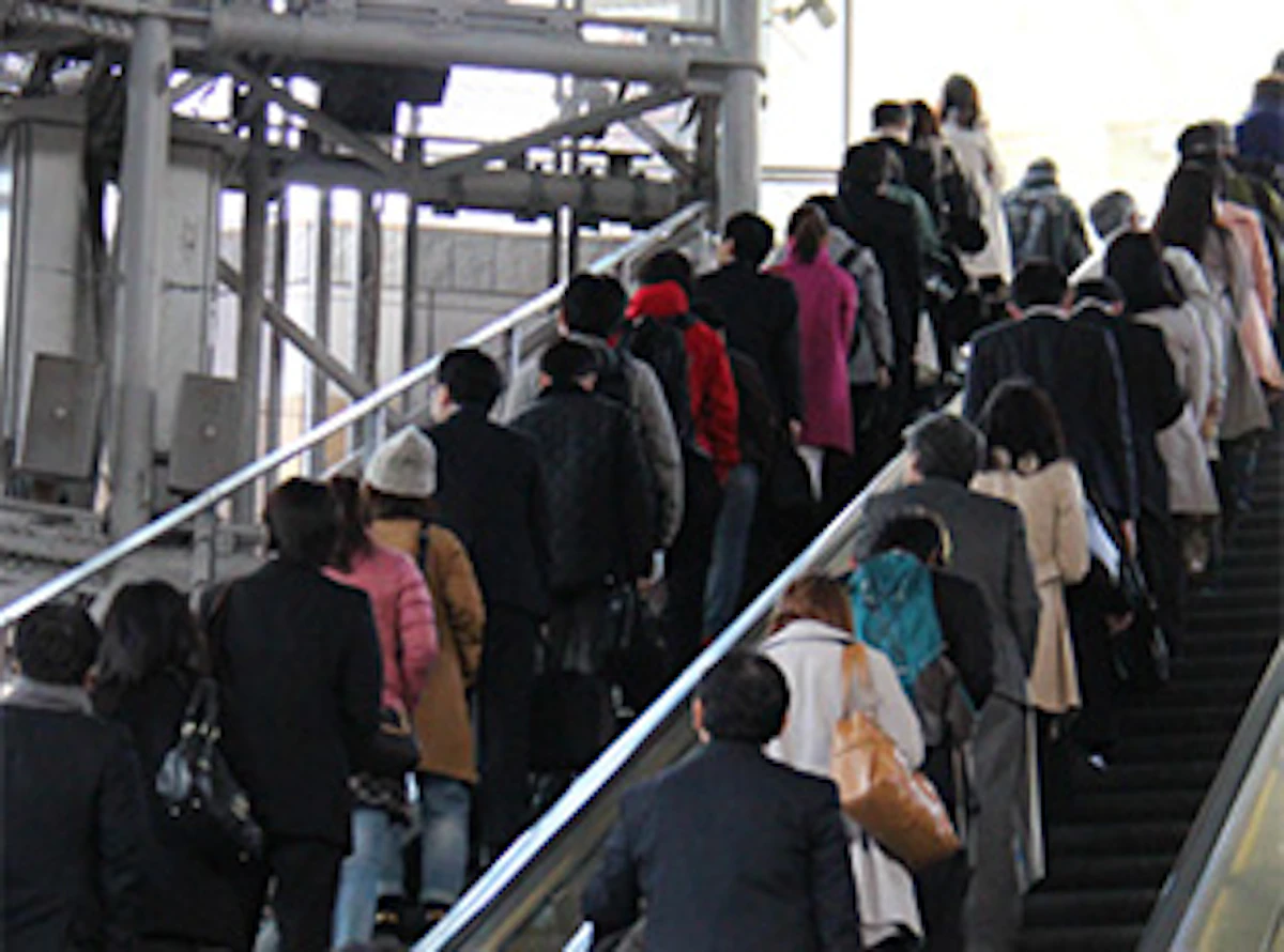 エスカレーターは、立ち止まって利用することを前提につくられていますが、エスカレーターの片側をあけ、歩行するということが習慣化しています。昨今、エスカレーターの利用時に、バランスを崩して転倒したり、駆け上がったり駆け下りたりした際に衝突し他の乗客を転倒させるなどの事象が発生しています。また、エスカレーターで歩行用に片側をあける習慣は、片側をあけて乗ることのできない乗客にとって危険な事故につながる場合もあります。