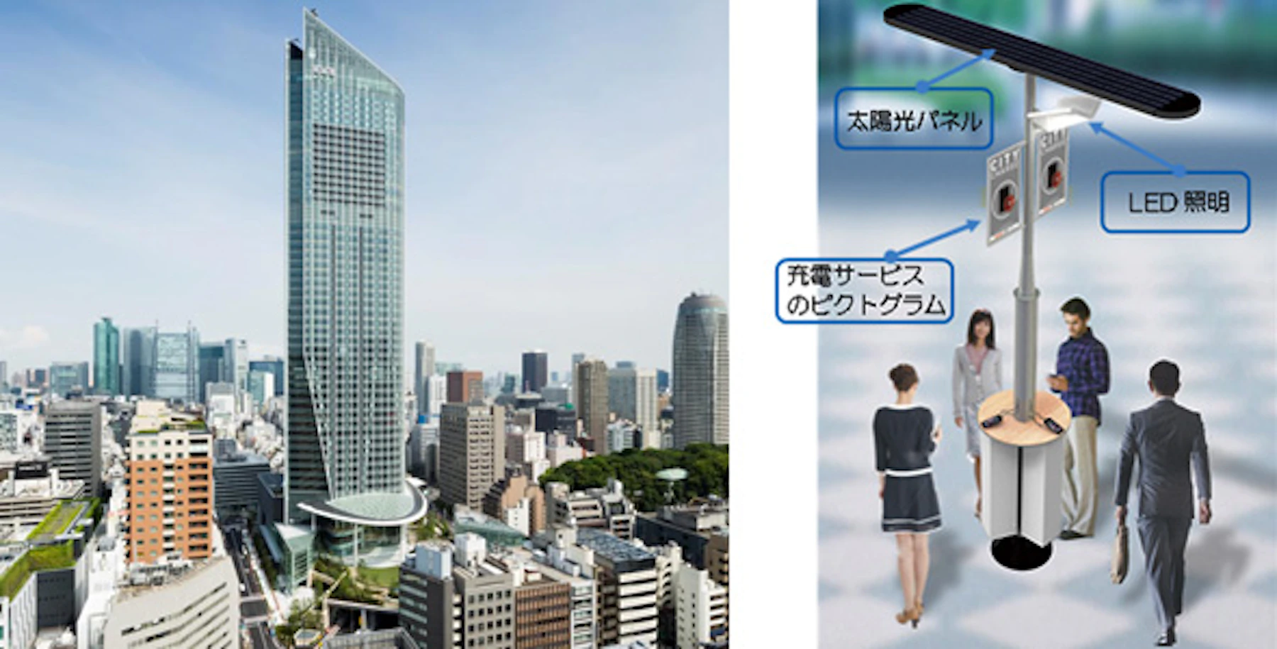 「シティチャージ」は、太陽光パネルからの電気でスマートフォンなどの充電が無料でできるソーラー充電スタンドで、東京都環境公社と設置事業者であるシャープ株式会社が連携して実施している日本初の取り組みです。太陽光発電を身近に感じることができるほか、外国人旅行者への「おもてなし」にも資するものです。虎ノ門ヒルズでの設置は日本で二か所目となり、この度設置されるシティチャージは、10月7日に先行導入された東京タワーでの利用者の声を反映し、雨対策として充電ボックスが自動で閉まる仕様へと改良されたものです。蓄電池搭載により夜間・雨天時でも充電可能であり、また非常用電源としても有用です。