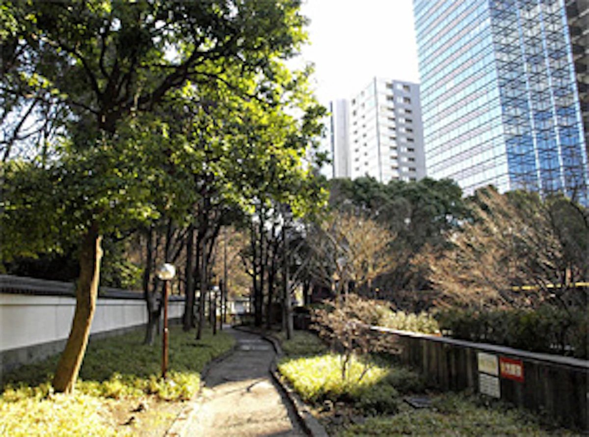 森ビルでは、後楽森ビル(地上19階・地下5階、2000年竣工)建設にあたり、ビルの高さや外観を周辺の景観と調和するよう十分に考慮すると同時に、先にトヨタ自動車株式会社が整備していた緑道を延伸。文教の地にふさわしく、緑道には築地塀、案内板、ベンチおよび資料展示室を設置するなど、小石川後楽園正門へ導くプロムナードとなる様に、文化財への配慮を行いました。