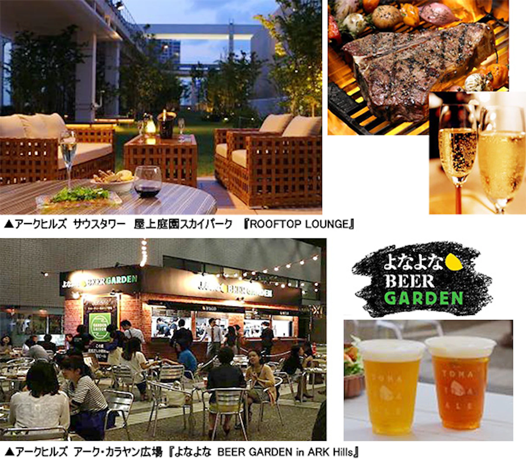 またアークヒルズ アーク・カラヤン広場では、ヤッホーブルーイング社の人気クラフトビールが全て生で楽しめるビアガーデン、『よなよなBEER GARDEN in ARK Hills』を開催します。ここでしか飲めない世界唯一の限定ビール「ガーデン セッション」も登場し、ビールに合う豊富なグリルメニューと共にお楽しみいただけます。