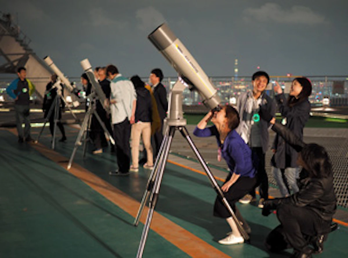 当日は、通常は入ることができないヘリポート内に天体望遠鏡を設置し、天文の専門家と一緒に、織姫・彦星や夏の大三角、木星、土星などを観望していただけます。