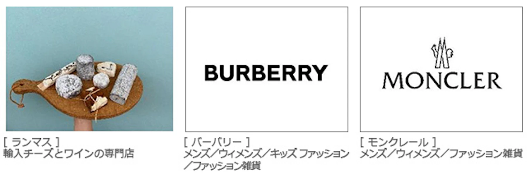 プレミアムダウンブランド「モンクレール」や、イギリスを代表するラグジュアリーブランド「バーバリー」などが出店