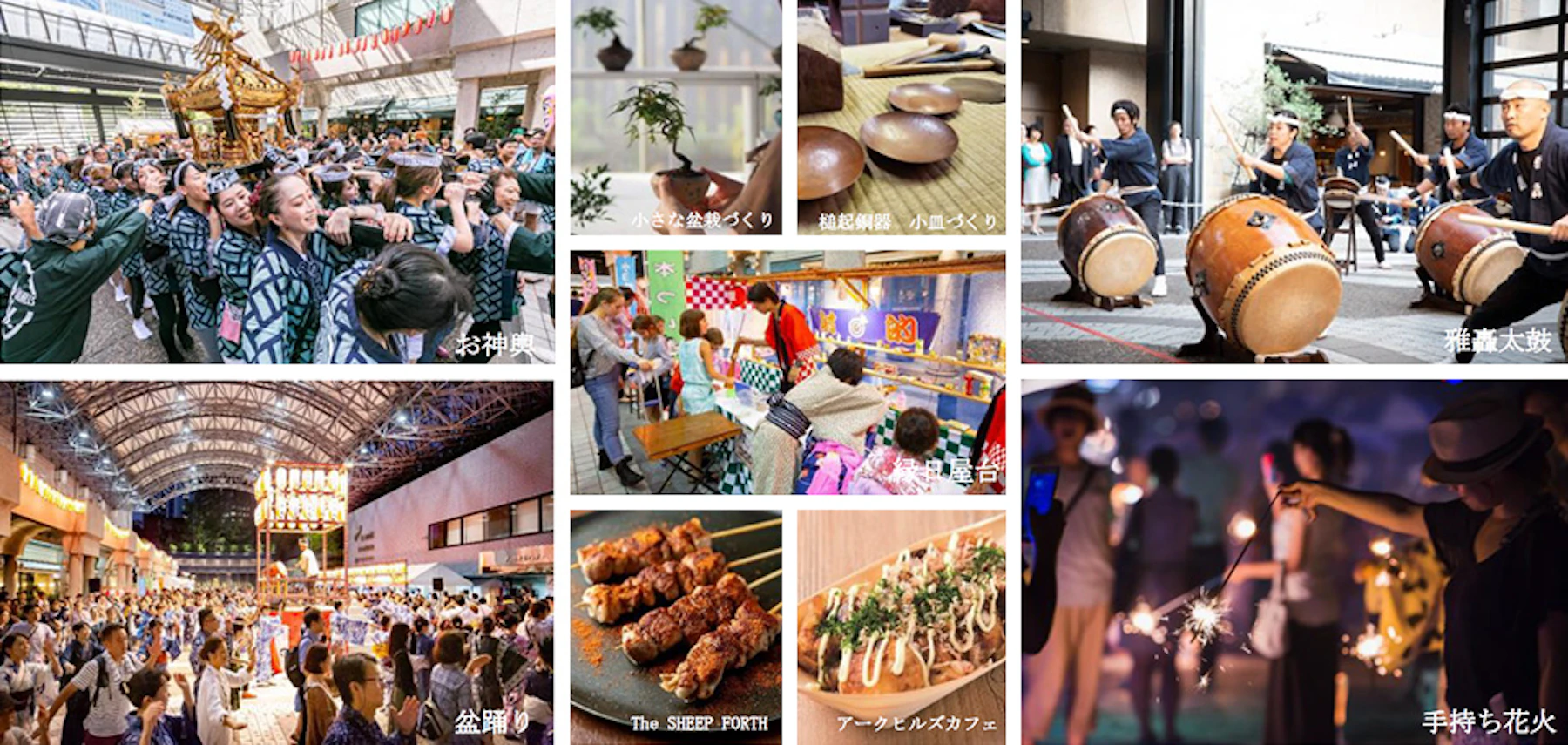 4年ぶりに復活する秋祭りの見どころは、約150名もの担ぎ手によるお神輿の渡御。さらに、アーク・カラヤン広場に出現するやぐらを中心に幅広い選曲が特徴の盆踊りや、アークヒルズの各店が手掛ける特別メニューを提供するグルメ屋台など、アークヒルズらしい企画を展開し、お祭り気分をより一層盛り上げます。その他、サントリーホールを擁するアークヒルズならではのミュージック&パフォーマンスのプログラムや、大人から子どもまで楽しめるものづくりワークショップなど、多種多様なコンテンツで4年ぶりに開催される秋祭りを彩ります。