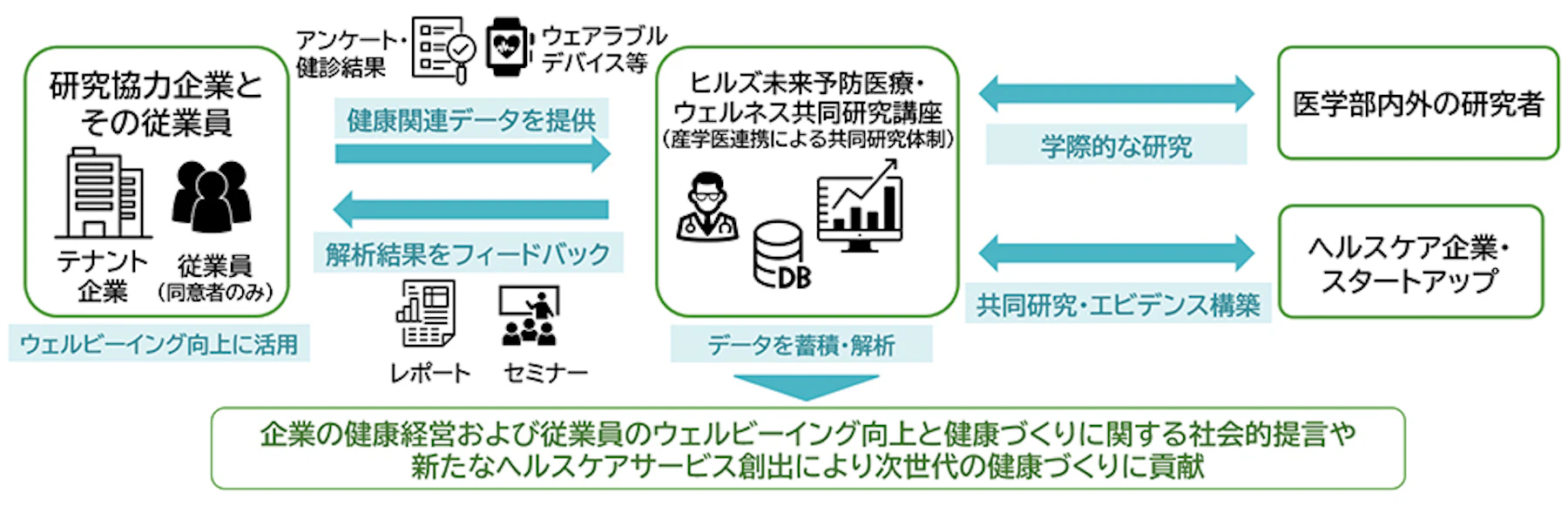 学校法人慶應義塾(東京都港区、塾長:伊藤公平)と森ビル株式会社(東京都港区、代表取締役社長:辻 慎吾)は、2021年4月に開設した「慶應義塾大学医学部ヒルズ未来予防医療・ウェルネス共同研究講座(特任教授:岸本泰士郎)」の一環として、「働く人の心身の健康やウェルビーイングに資するデータベース構築」(以下「本研究」)を開始しました。