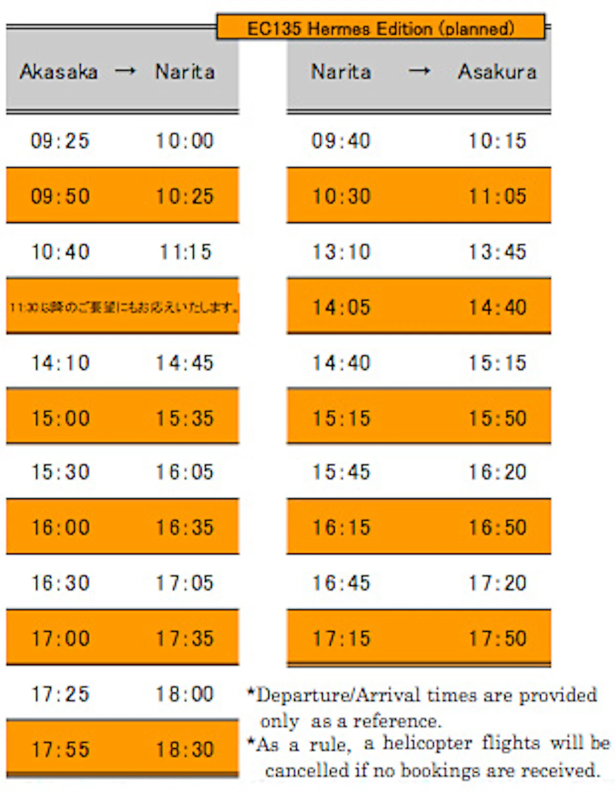 Bookings and Inquiries Mori Building City Air Services website : http://www.mcas.co.jp/ |