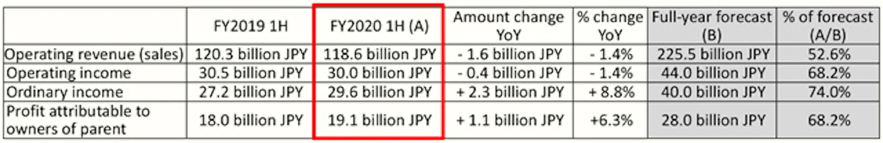 Mori Building Announces Fiscal 2020 First Half Earnings