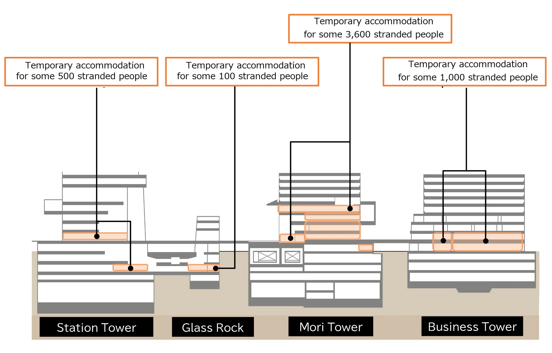 Toranomon Hills' accommodation system for accepting stranded pepole