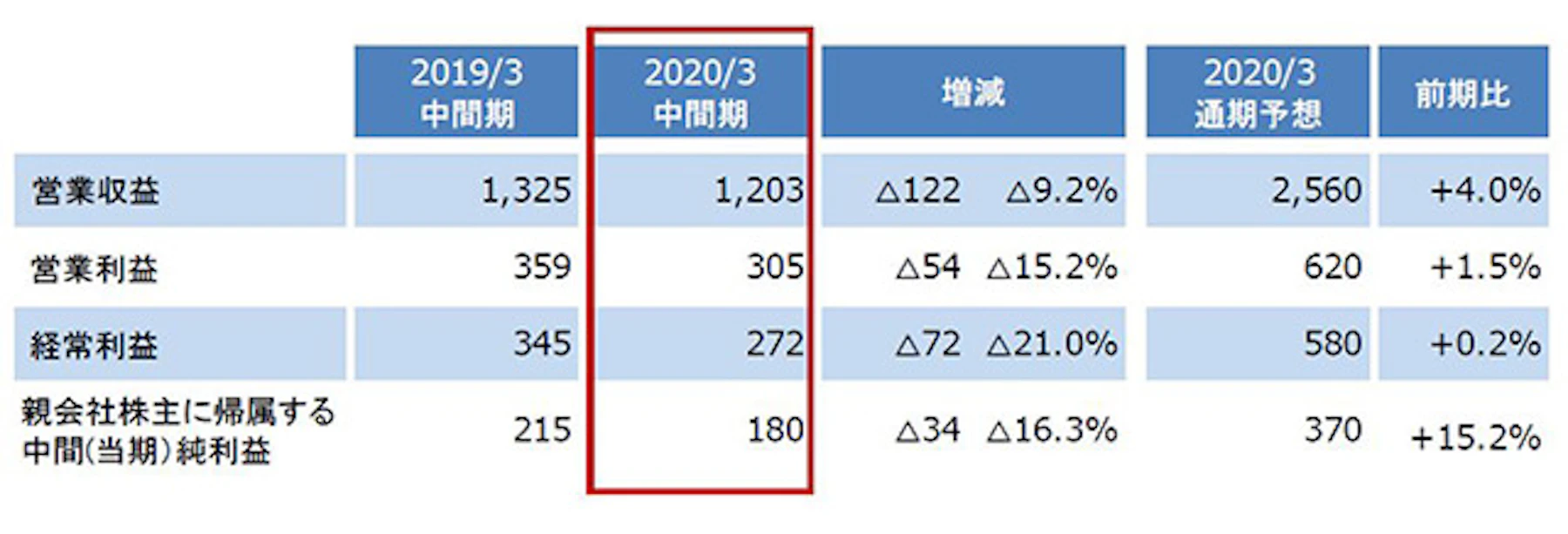 ■ 中間連結業績概要(単位:億円)