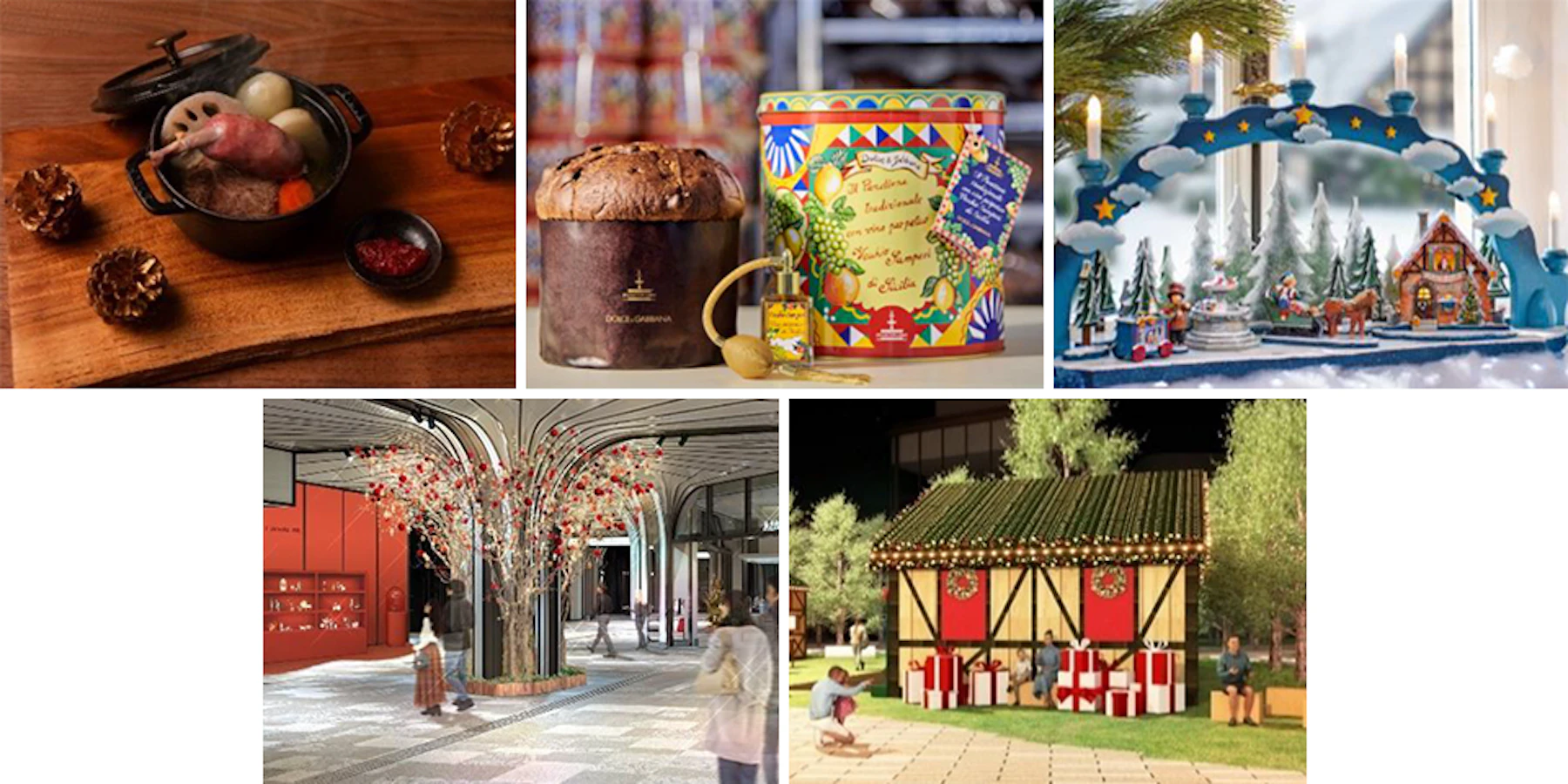 物販店では、ドイツに本店を構えるクリスマス用品専門店「ケーテ・ウォルファルト」をはじめ、ドルチェ&ガッバーナデザインのクリスマス菓子パネットーネ、トロンチーニを限定販売する「ドルチェ&ガッバーナ×フィアスコナーロ」やクリスマスのアロマプロダクトの「バロン」などクリスマス雑貨を扱う5店舗が出店。飲食店では、三國清三氏が監修する「ダイニング 33」が、フランスの伝統料理ポトフーを提供するほか、本場イタリア料理を展開する「フィオルディマーゾ&クランデスティーノ41」はチーズフォンデュ、ドイツ人シェフが手掛ける「ジャーマン クリスマス スタンド」では焼きたてプレッツェルやソーセージを提供するなど、12店舗が麻布台ヒルズのクリスマスマーケットでしか味わえない様々な国の本格的なクリスマスグルメをご用意します。