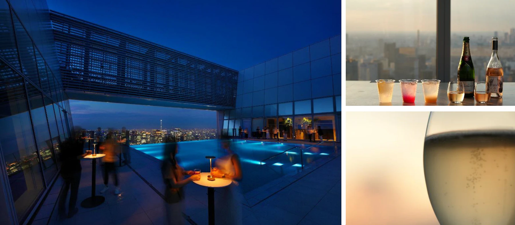 スカイガーデンでは、フランス版ミシュランガイドで5年連続3つ星獲得の小林圭シェフが手掛けるレストラン「KEI Collection PARIS」のアミューズやドリンクとともに、東京を眼下に臨む特別なひと時をお楽しみいただけます。Moët & Chandonのシャンパーニュや、「KEI Collection PARIS」のキッチンで抽出されたシグニチュアカクテル「Eternite(エタニテ)」をアレンジしたモクテル、お酒やモクテルにぴったりの3種のアミューズなどを用意しております。