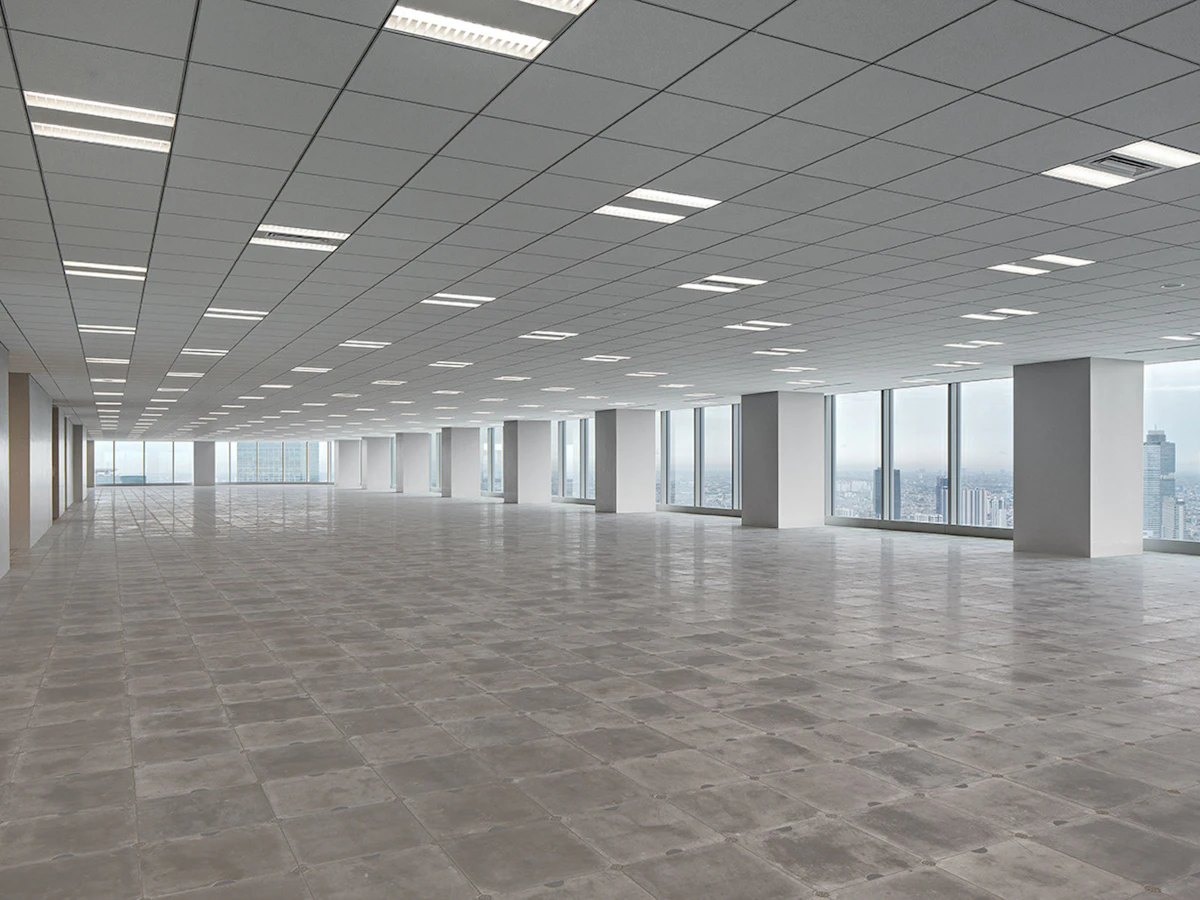 14階から54階を占めるオフィスの総貸室面積は約88,700m²で、約2,300m²の基準階貸室面積は、ジャカルタ最大規模となります。目抜き通り・スディルマン通りを一望できる、横幅83m、奥行18.5m、天井高3.0mの広大な無柱空間は圧倒的な開放感を提供。サイドコア方式を採用した整形で広大なオープンスペースは、ワーカー同士の自然なコミュニケーションを誘発します。また、床荷重はジャカルタ最高スペック(最大800kg/m²、標準500kg/m)に設定されており、自由なレイアウトと内装造作を可能にするとともに、グローバル企業の多様な働き方に柔軟に対応します。