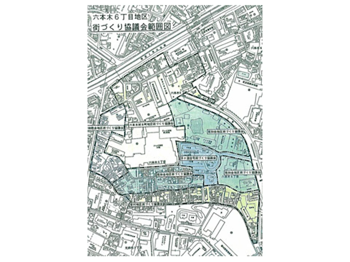 各地区とも規約の目的は「六本木六丁目地区における再開発について構成員相互に意見交換し、より良い街づくりについて研究・検討する」こととされ、協議会運営のために各地区とも5名から10名の理事を選出しました。また、事務局には全地区において森ビルとテレビ朝日が選出されました。
