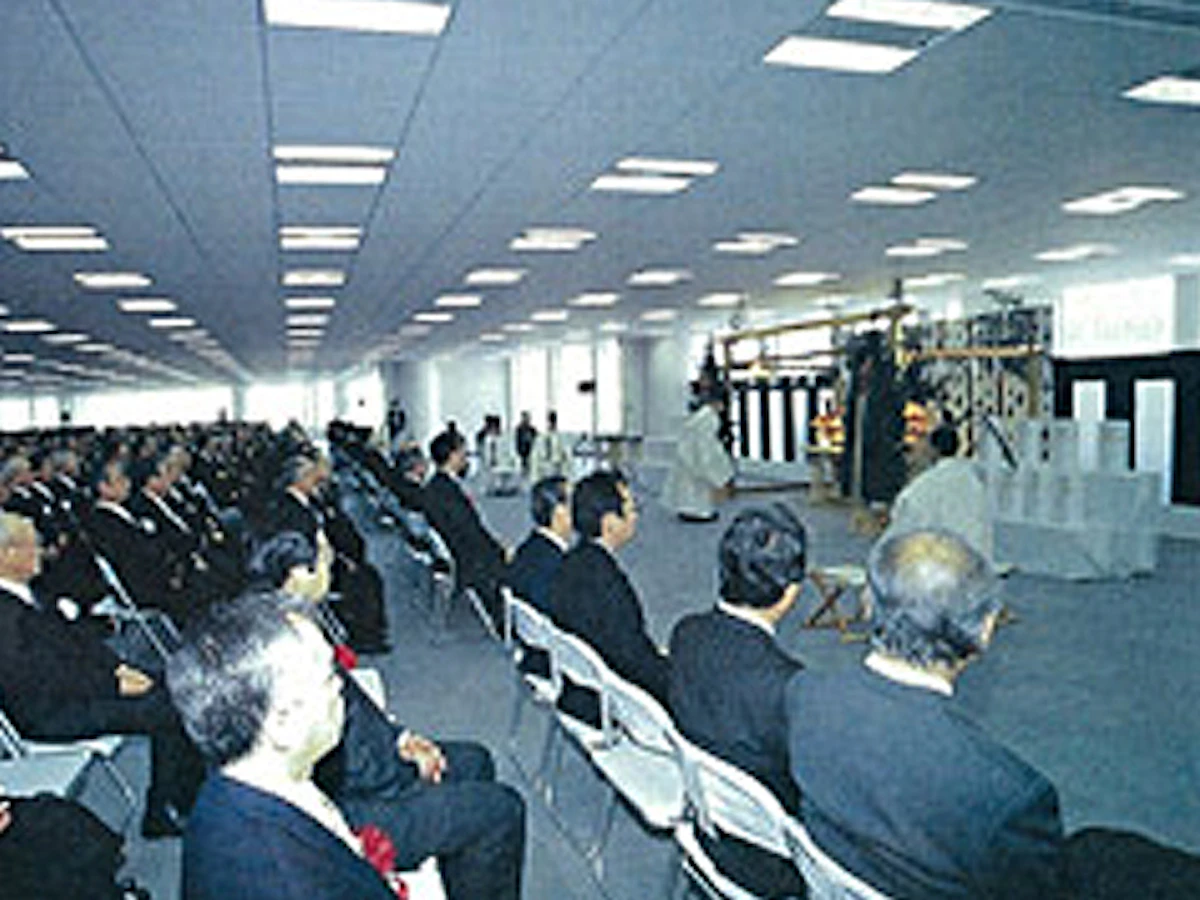 平成15年4月7日、六本木ヒルズ森タワー15階において、六本木ヒルズの竣工式が行われました。神事には約1,000名が参加。その後の直会で原理事長は再開発に対する思いを語りました。「実に17年という歳月が流れ、ようやく完成しました。従前は防災面からも危険性を指摘された地区で戦前の空襲で一面焼けた地区であるにもかかわらず、戦後の復興過程において道路の幅も広がらず、狭い道路に小さな建物が建て詰まる街でした。そこに再開発事業によって広い道路、公園、広場が出来上がりました。建物を超高層化することによって、森ビルの権利を確保しながら六本木ヒルズアリーナや毛利庭園をはじめ、様々な広場、空間を創ることが出来ました。備蓄倉庫、防火水槽も整備しました。再開発前に比べると飛躍的に安全な街づくりを実現出来たと思います。」