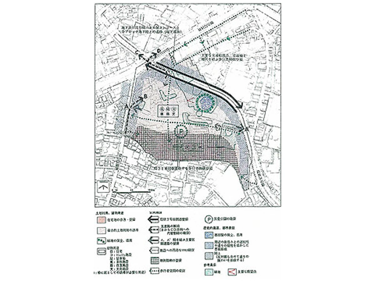 部分的な再開発事業から地区全体の再開発事業に踏み込んだ考え方が示された背景は、地区の重要課題解決のために出来るだけ広い範囲での開発が望まれたことと、町会単位の勉強会により、地区南側の住宅地の権利者の間で地区全体の再開発事業が必要であることが強く認識され、一体での再開発への意向が高まってきたためです。