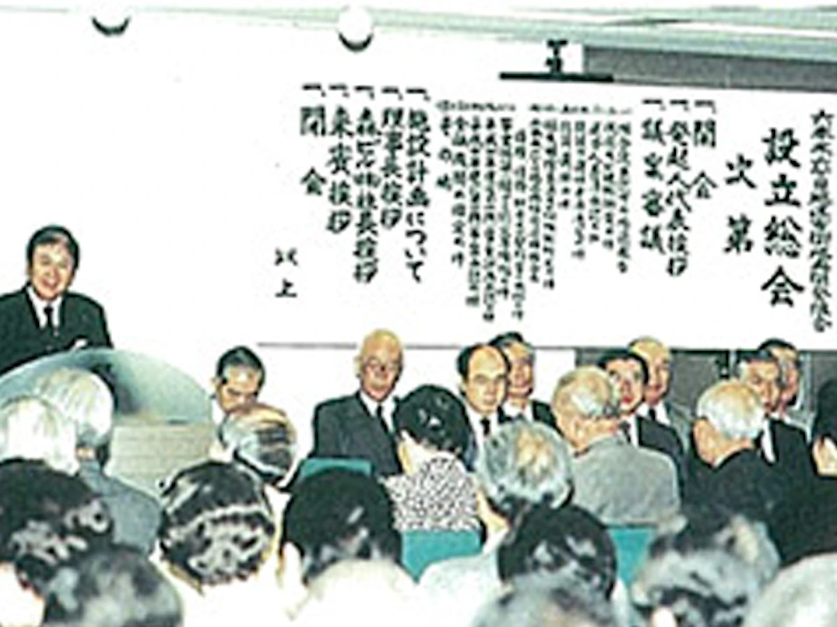 なんとか認可申請し、春には設立認可が下りてくると期待し、準備を進めていましたが、なかなか認可は下りません。春が過ぎ、梅雨が過ぎてもまだ下りません。認可が下りたら30日以内に設立総会を開催しなければなりません。設立記念パーティの準備や準備組合の解散総会もすぐに開かなければなりません。事務方は認可の下りる日を固唾を飲んで待ちつづけました。いつ下りるか分からないので誰も夏休みが取れません。お盆が過ぎてもまだ下りず、結局認可が下りたのは申請から8ヶ月後の平成10年9月16日。