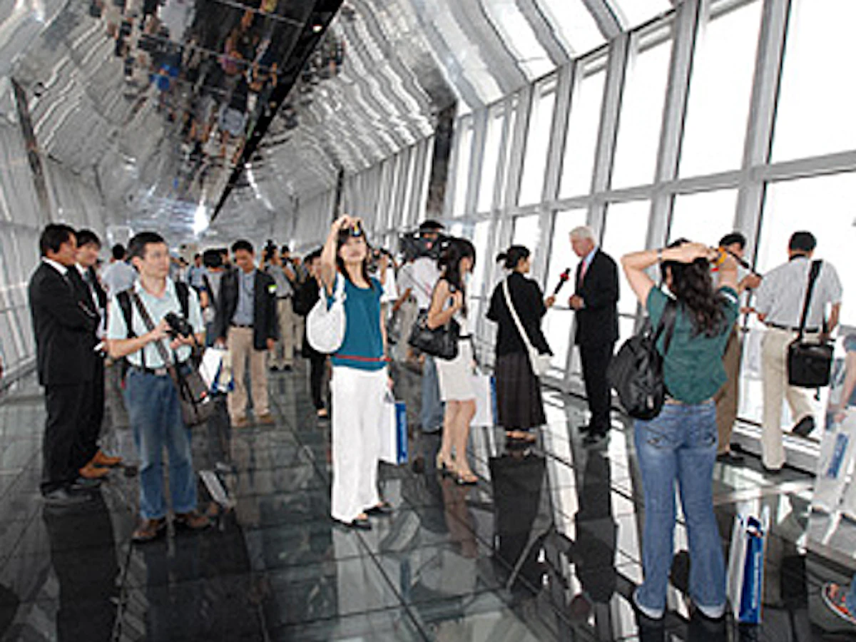 2008年8月28日、中国の国内外から集まった500人を超える報道陣を前に、環球金融中心のオープニングプレス発表会が行われた。世界の目を中国に釘付けにした北京オリンピックの閉幕から4日目のことである。そして、1994年の事業決定からは、実に14年目のことであった。